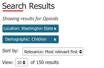 3 Applied Filters Applied Filters Text is the applied filter. If filter is inside an parent, the parent is also show (e.g. Location: Washington) uses the primary button with font-awesome close icon OnClick/On Tap of button, filter is removed from result set. These print as text (not as buttons) “Applied filters: {Filter name}, {Filter name}”